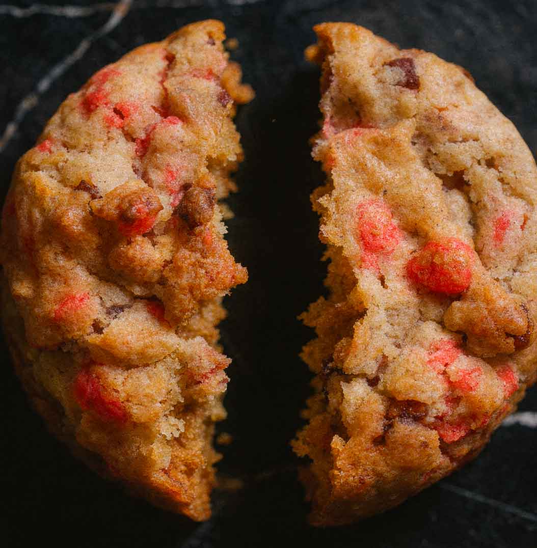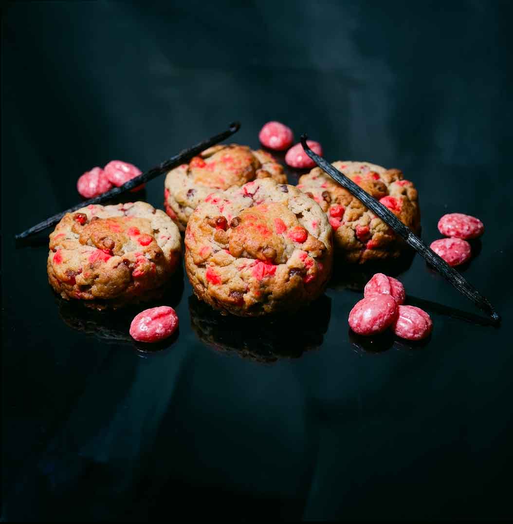 Le Rose est sans doute la création la plus “Couture” de Coucou Cookies. Imaginé comme un bouquet sensoriel, ce cookie de 100g est une ode à la finesse, où le croquant nostalgique de la praline rose rencontre la vivacité sauvage de la framboise, le tout lié par la noblesse d’une vanille d’exception.