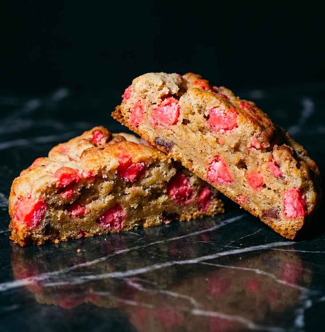 Comme toutes nos créations, Le Rose n’est pas simplement cuit, il est sculpté. Chaque pièce est dressée avec une précision millimétrée, offrant un visuel poudré et vibrant qui détonne dans l’univers de la pâtisserie classique. C’est le cookie des épicuriens qui cherchent l’équilibre parfait entre le fruit, la fleur et le biscuit.